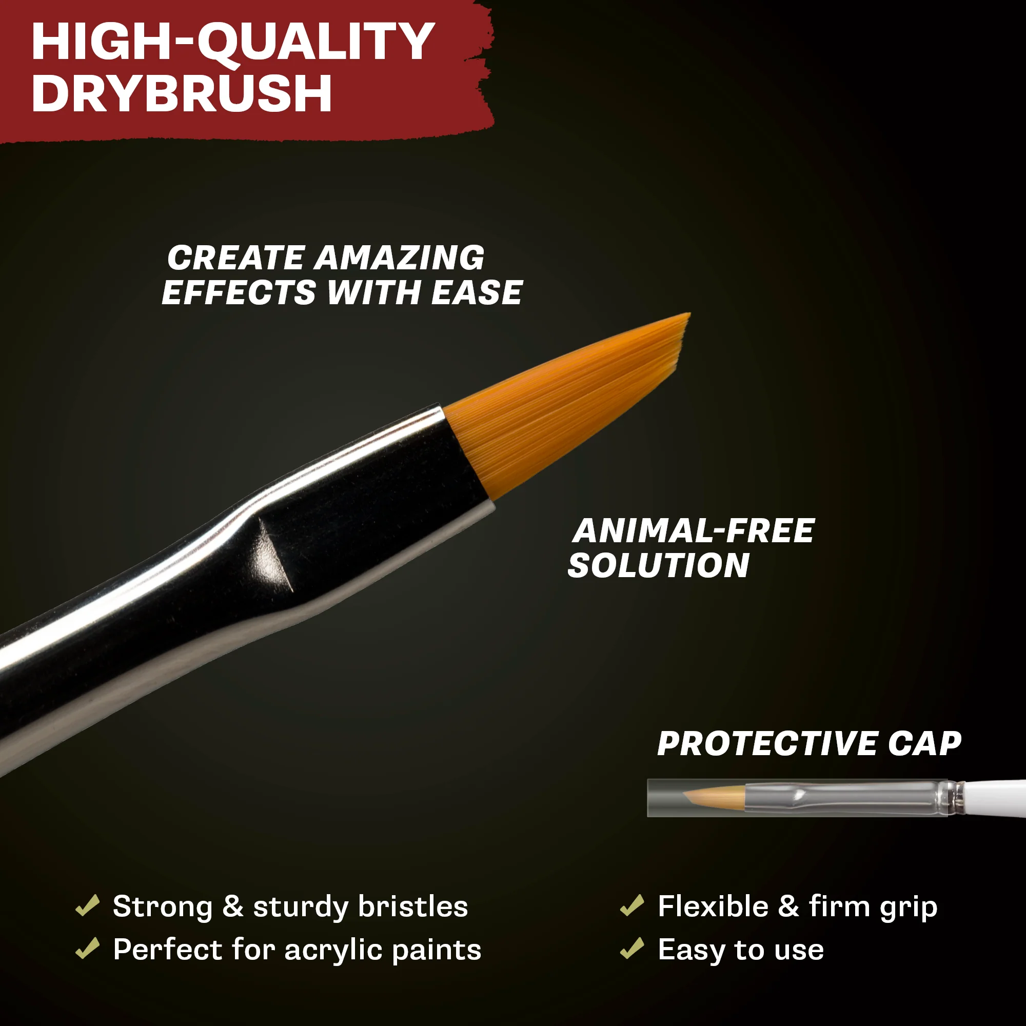 This is a very popular brush and as its bigger brother, this spectacular drybrush has a 43 degree angle cut to make it no less than perfect for drybrushing small miniatures.
